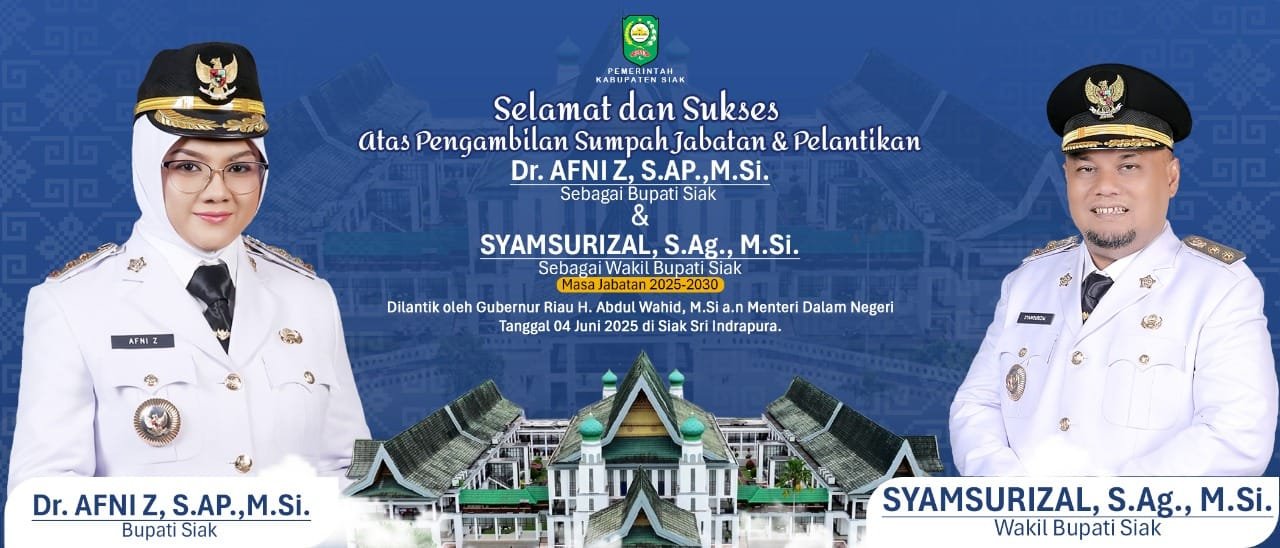 Pemerintah Kabupaten Siak Mengucapkan Selamat Atas Pengambilan Sumpah Jabatan Bupati Dan Wakil Bupati Siak Periode 2025-2030 Redaksi3 Juni 2025 0