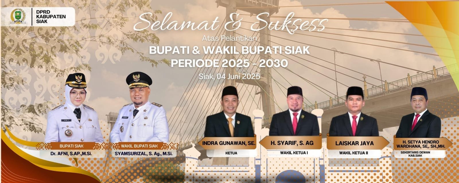 DPRD Kabupaten Siak Mengucapkan Selamat Atas Pengambilan Sumpah Jabatan Bupati Dan Wakil Bupati Siak Periode 2025-2030 Redaksi3 Juni 2025 0