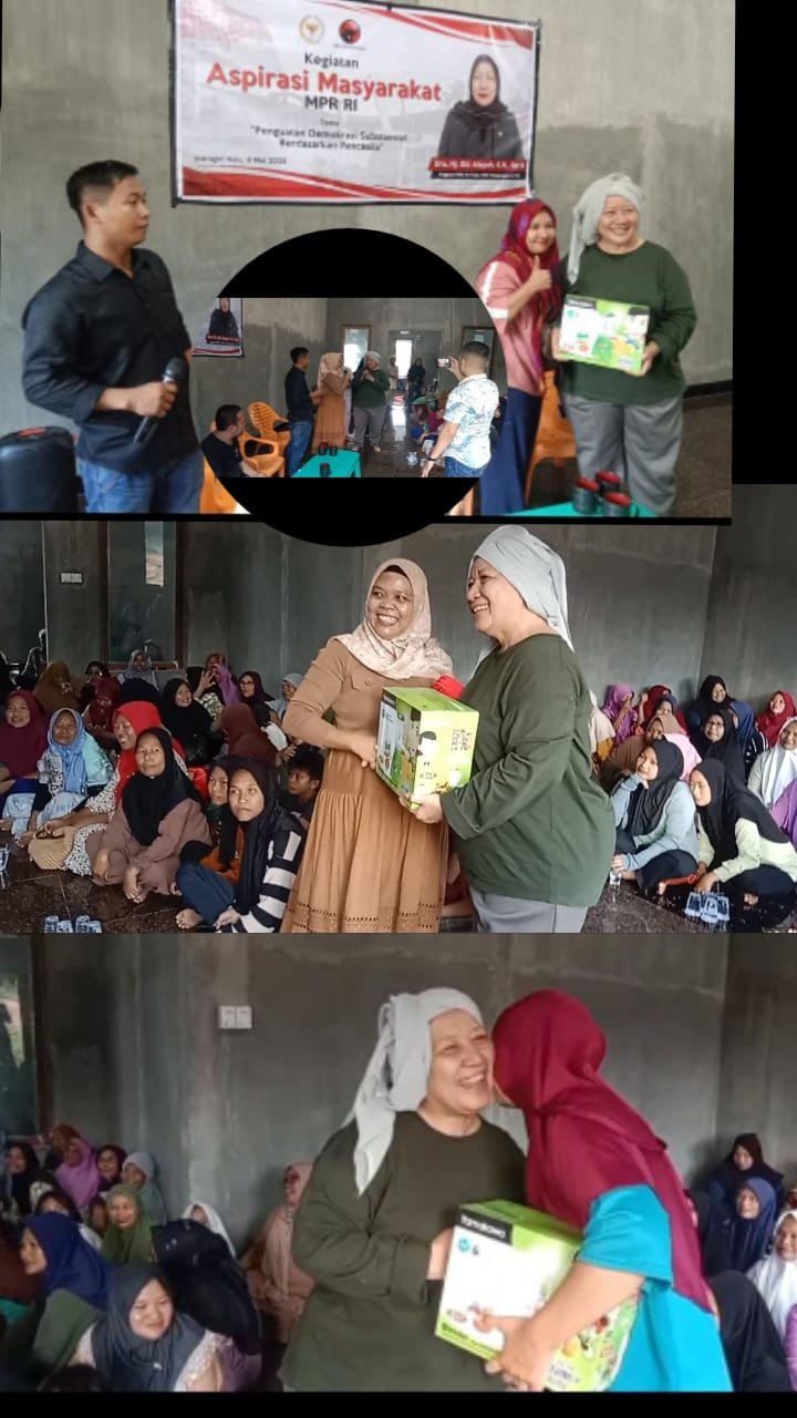 INHU, Suaraaspirasi.com – Penguatan demokrasi substansial berdasarkan Pancasila berarti memperkuat sistem demokrasi di Indonesia dengan nilai-nilai yang terkandung dalam Pancasila, sehingga demokrasi tidak hanya sekedar dianggap formalitas, tetapi juga memberikan dampak nyata di kehidupan masyarakat dalam berbangsa dan bernegara. Demokrasi substansial artinya, menekankan pada partisipasi aktif masyarakat, tentang keadilan sosial, dan kesejahteraan bersama, serta perlindungan hak-hak minoritas dan HAM. Elaborasi, “Demikian Jelas Dra. Hj. Siti Aisyah, S.H., Sp. N Anggota MPR RI Fraksi PDI Perjuangan A-164 dalam giat pemaparan Resesnya dihadapan sekitar 200 lebih masyarakat desa Talang Jerinjing, Kec. Rengat Barat, Kab. Indragiri Hulu (Inhu), Prov. Riau Jumat, (9 Mei 2025), siang di Rumah Aspirasi Siti Aisyah di desa Talang Jerinjing.