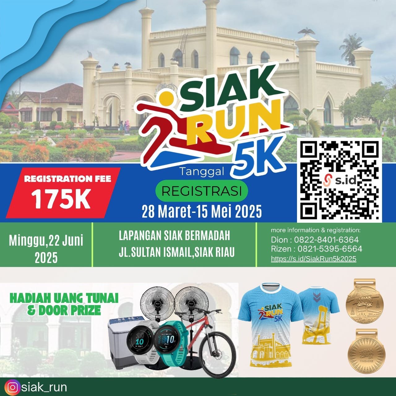 Ketua Pelaksana event Siak Run 2025 Teguh Santoso mengatakan, even ini akan berlangsung pada 22 Juni 2025 mendatang, dengan kategori umum dan master (40thn keatas) Siak Run 2025 perdana digelar, berharap pesertanya ramai.