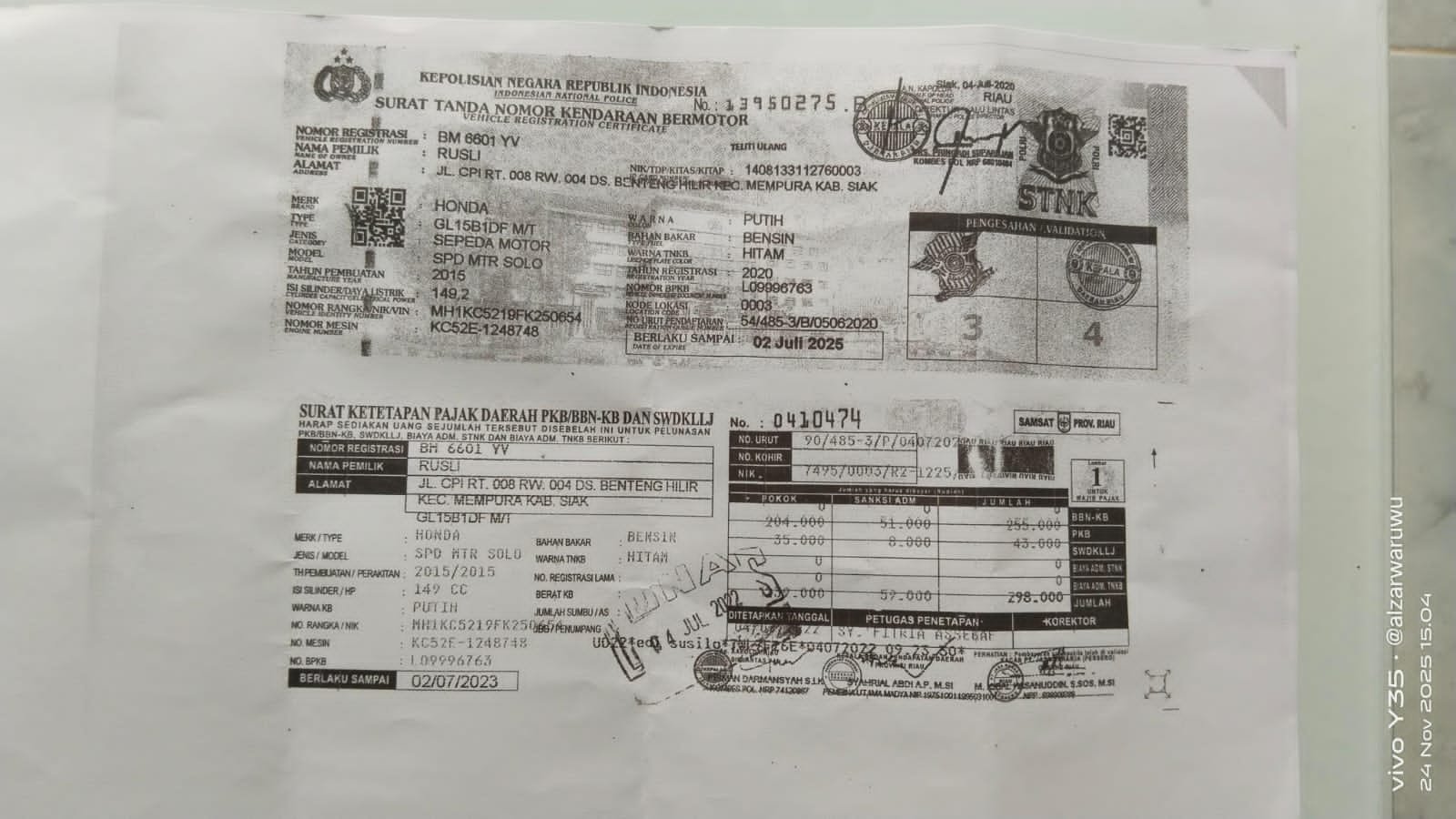 SIAK, Suaraaspirasi.com – Telah Hilang Satu Buah Buku Pemilik Kendaraan Bermotor (BPKB) Kendaraan Roda Dua dengan rincian sebagai berikut :