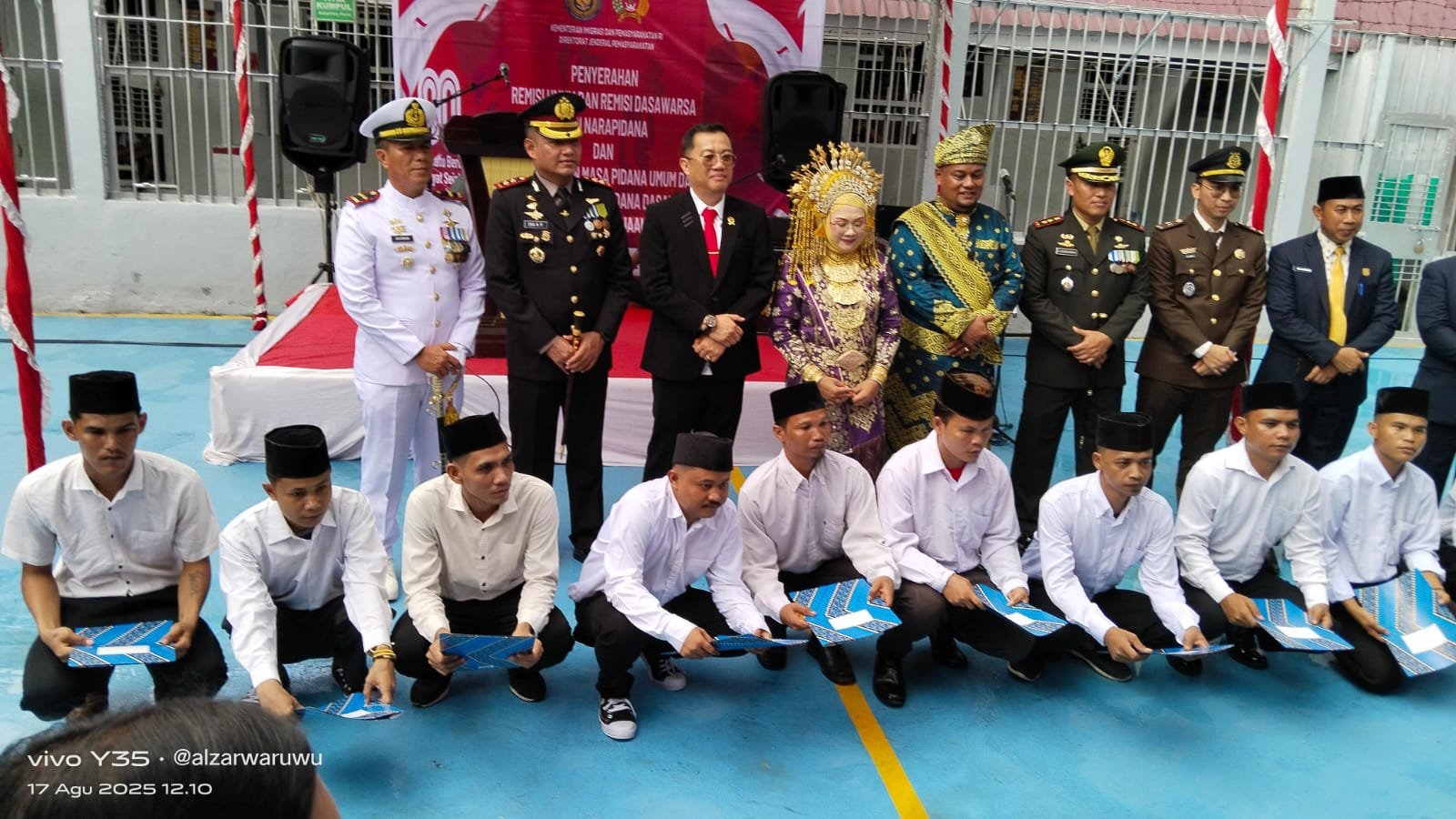 SIAK, Suaraaspirasi.com – Sempena Hari Ulang Tahun Republik Indonesia (HUT) Ke-80 Tahun 2025, Kementerian Imigrasi dan Pemasyarakatan Direktorat Jenderal Pemasyarakatan (Ditjen Pas) RI berikan Pengurangan Hukuman (Remisi) Kepada Narapidana warga binaan Rumah Tahanan Negara Kelas-II B Siak Sri Indrapura, Ahad (17/8/2025).