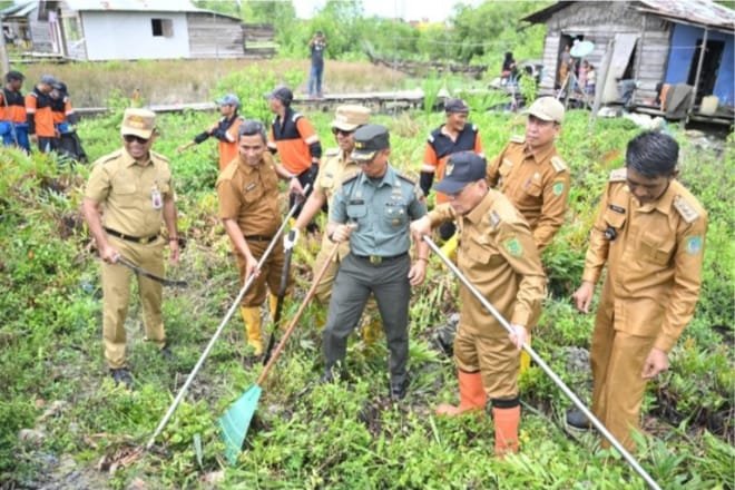 Foto : Bupati dan Wakil Bupati Rokan Hilir H. Bistamam dan Jhony Charles Bersama Dandim 0321 Rohil Letkol Kav. Nugraha Yudha Prawiranegara Tinjau Kegiatan Gotong Royong di Kecamatan Sinaboi