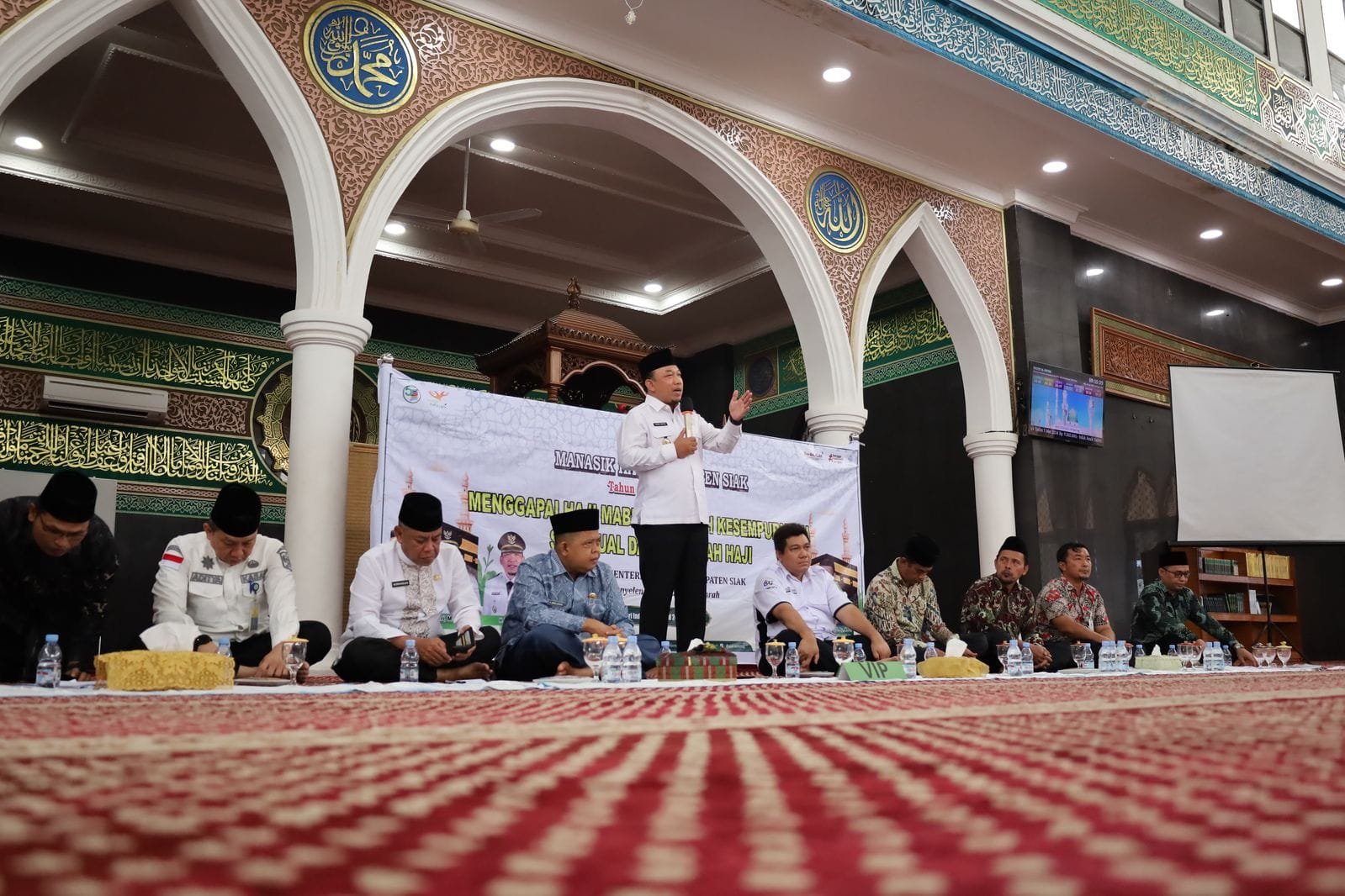 Wakil Bupati Siak Husni Merza saat menekankan pentingnya manasik sebagai persiapan pembekalan spiritual dan teknis kepada para calon jemaah haji sebelum mereka diberangkatkan ke Tanah Suci Mekkah.