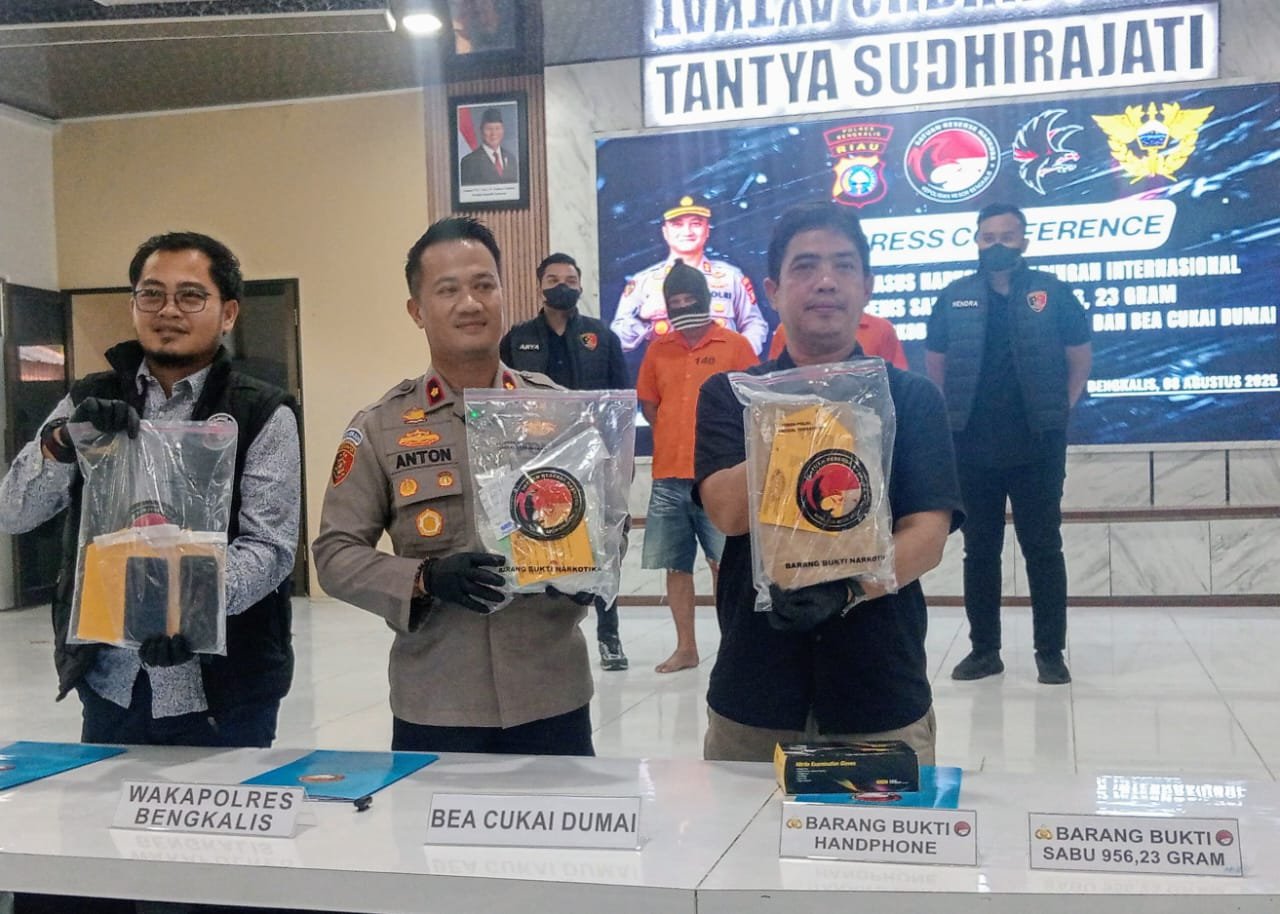 BENGKALIS, Suaraaspirasi.com – Satuan Reserse Narkoba Polres Bengkalis kembali menorehkan prestasi dengan mengungkap peredaran gelap narkotika jenis sabu seberat 956,23 gram. Kasus ini diumumkan melalui press conference yang digelar di Aula Tantya Sudhirajati Polres Bengkalis, Jumat (8/8/2025) pukul 10.00 Wib.