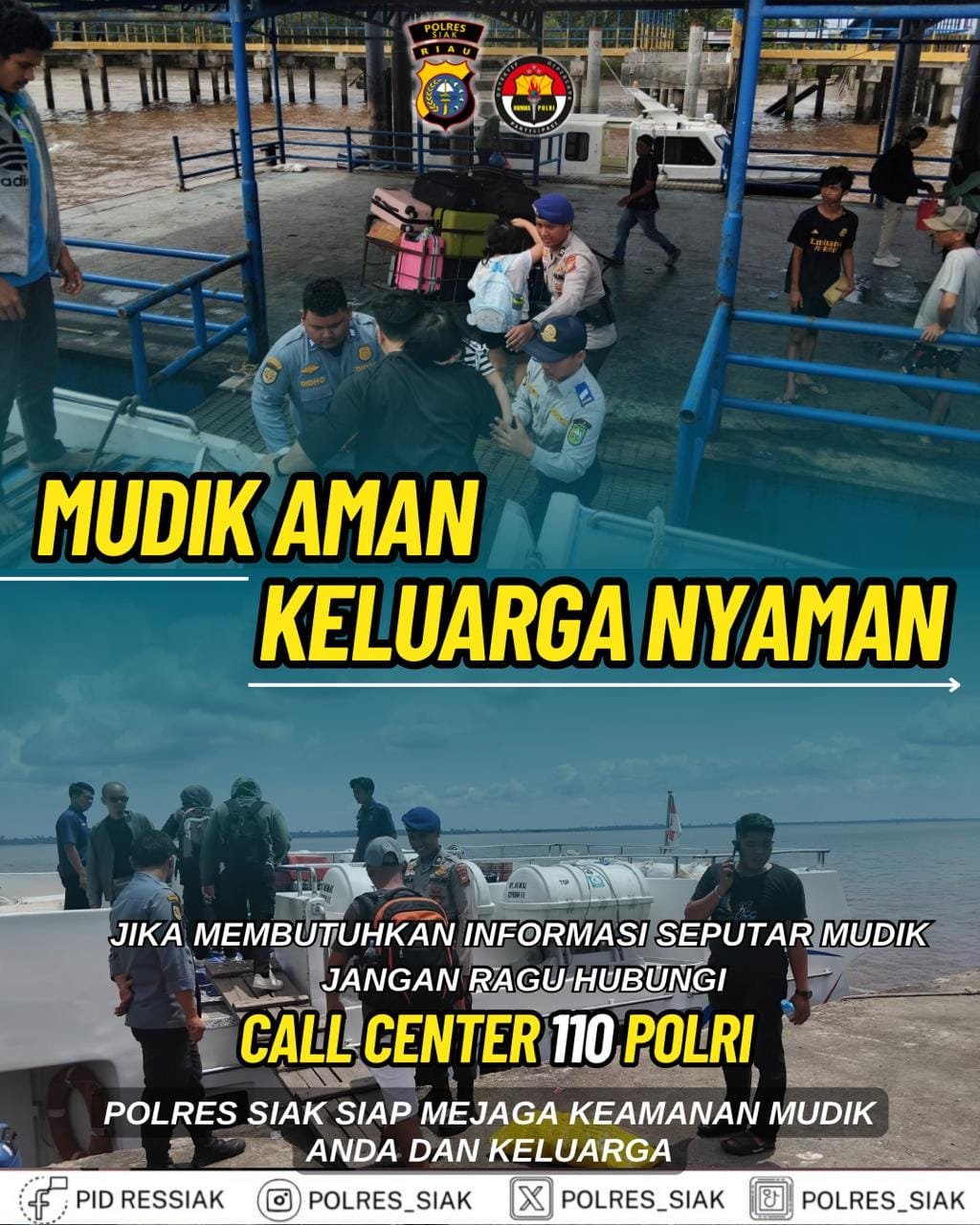 Kapolres Siak, AKBP Eka Ariandy Putra, melalui akun media sosial Polres Siak, mengajak masyarakat untuk lebih aktif dalam memanfaatkan Call Center Mudik Polri 110, yang dapat dihubungi kapan saja dalam keadaan darurat, baik terkait kecelakaan, kehilangan, maupun tindak kriminal. “Kami ingin masyarakat merasa aman dan nyaman selama mudik Lebaran. Call Center Mudik Polri 110 Polri hadir sebagai saluran komunikasi yang cepat dan responsif, siap membantu dalam situasi darurat. Jangan ragu untuk menghubungi kami,” ujar Kapolres Siak dalam unggahannya.