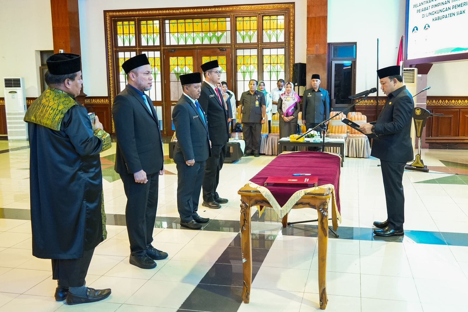 Tiga pejabat pimpinan tinggi pratama yang dilantik tersebut antara lain : 1. Raja Indoor Parlindungan Siregar dilantik menjabat sebagai Kepala Badan Keuangan Daerah (BKD) Kabupaten Siak, 2. Amin Soimin dilantik sebagai Kepala Dinas Lingkungan Hidup Kabupaten Siak, 3. Fakhrurrozi dilantik menjabat sebagai Kepala Dinas Pendidikan dan Kebudayaan Kabupaten Siak.