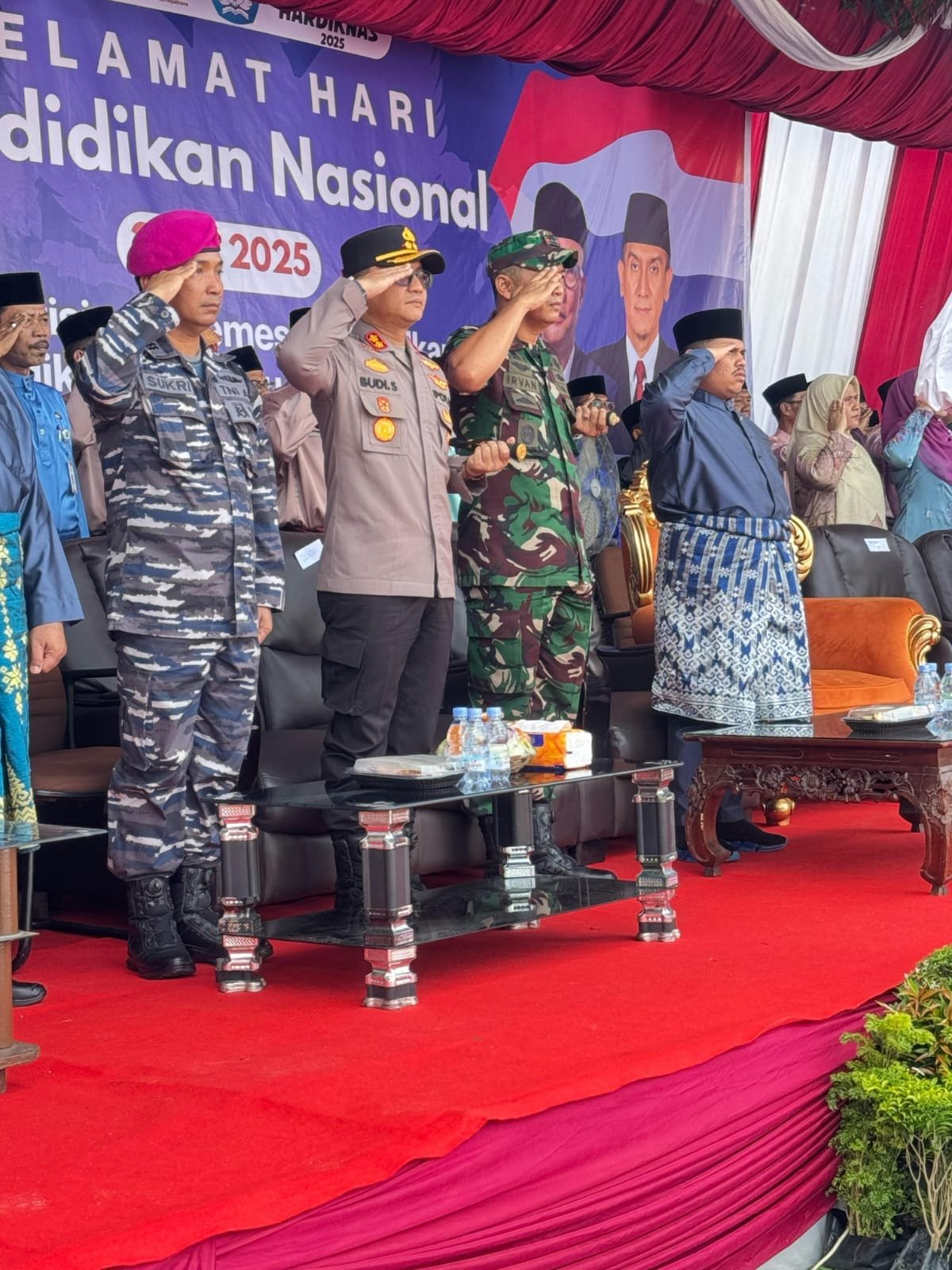 Foto : Kapolres Bengkalis AKBP Budi Setiawan, S.I.K, M.I.K, Bersama Forkopimda Menghadiri Upacara Peringatan Hardiknas Kabupaten Bengkalis Tahun 2025.