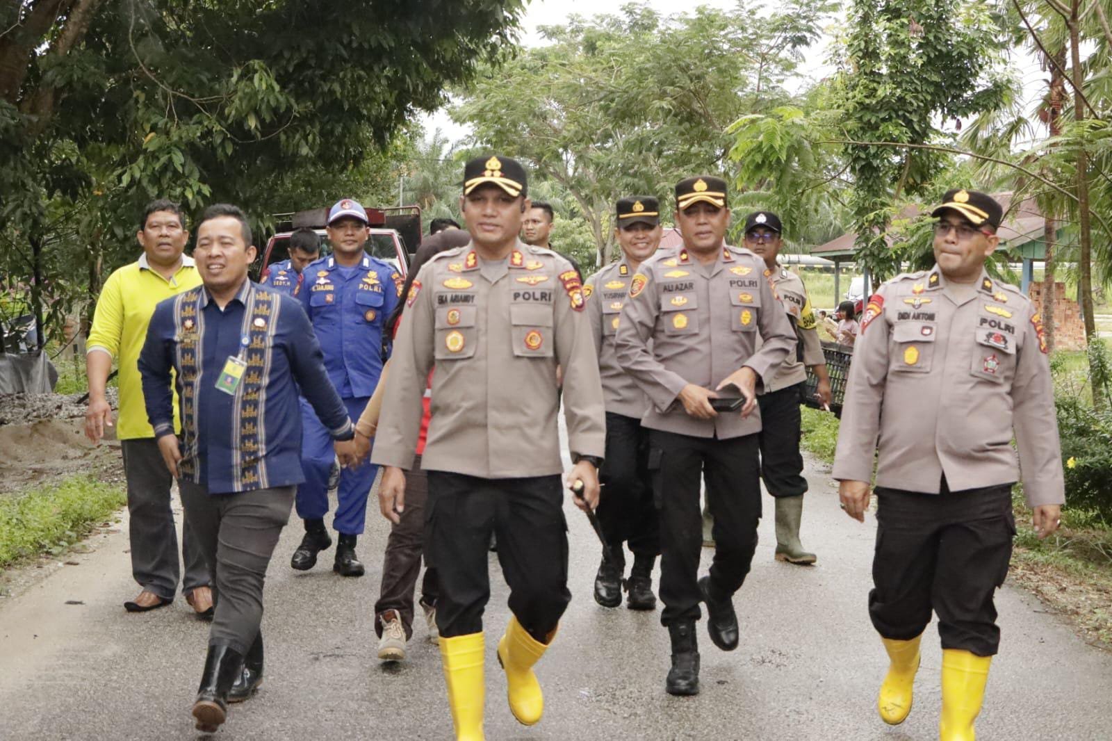 SIAK, Suaraspirasi.com – Kapolres Siak AKBP Eka Ariandy Putra, SH, SIK, M.Si bersama jajaran Polres Siak, Kodim 0322/Siak, BPBD Kabupaten Siak, Dinas Sosial, serta pihak Kecamatan Mempura melakukan monitoring dan pengecekan terkait perkembangan situasi bencana banjir di Kampung Benteng Hilir, Kecamatan Mempura, Kabupaten Siak, Kamis (16/1/2025).