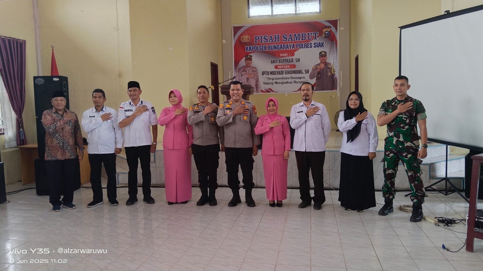 SIAK, Suaraaspirasi.com – Kapolsek Bungaraya yang sebelumnya dijabat oleh AKP Aspikar SH kini di gantikan oleh IPTU Mulyadi SH, di rotasi guna penyegaran di institusi POLRI, maka dari itu dilaksanakan acara pisah sambut dari Kapolsek yang lama dengan baru.