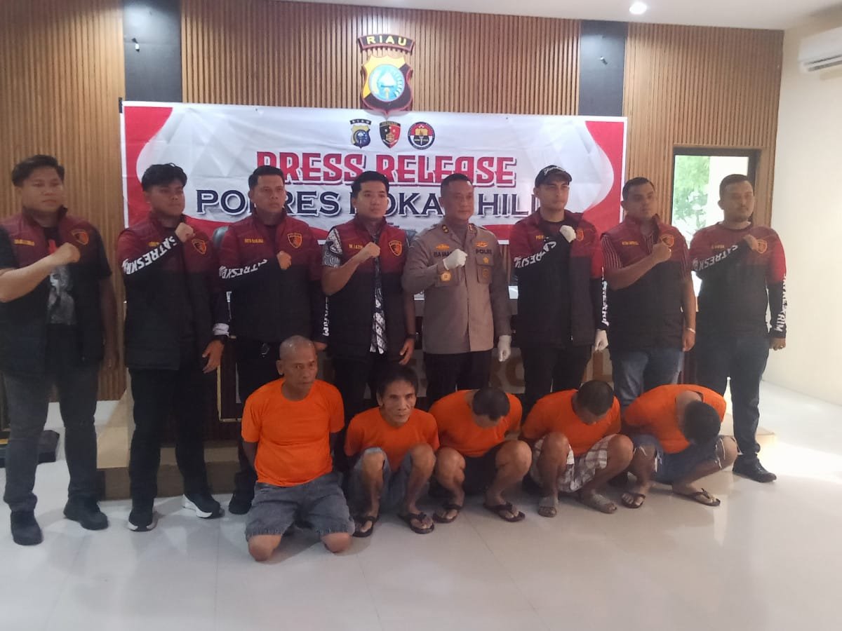 Foto : Konferensi Pers Polres Rokan Hilir 5 Orang Tersangka Kasus Perambahan dan Pembakaran Hutan