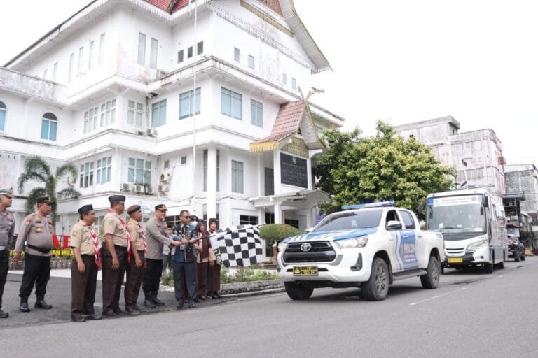Foto : Bupati Rohil H Bistamam Diwakili Sekdakab H Fauzi Efrizal SSos MSi Bersama Kapolres Rohil AKBP Isa Imam Syahroni SIK MH Melepas Kontingan Jambore Kab Rohil