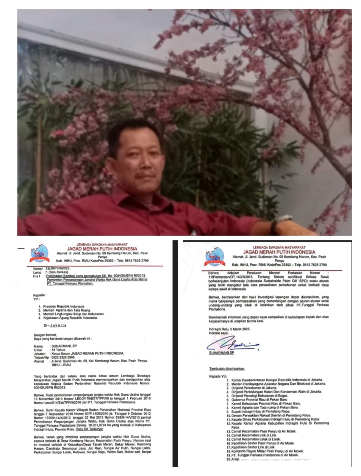 Di ungkapkan Suharmani, “Kami sebelum nya juga, lebih dulu telah menyurati Presiden RI dan di tembuskan kepada Menteri Agraria dan Tata Ruang, dan kami tembuskan ke Menteri Lingkungan Hidup dengan Nomor Surat: 12/Jmp/2025. Surat tersebut kami kirimkan pada, 5 Maret 2025 beberapa bulan kemarin. Adapun perihal surat tersebut adalah untuk menyampaikan Peninjauan Kembali (PK), serta pencabutan SK Nomor : 90/HGU/BPN RI/2013. Tentang pemberian perpanjangan jangka waktu Hak Guna Usaha (HGU) atas nama PT. TPP seluas 10.201,8794 hektare, ” ungkapnya.