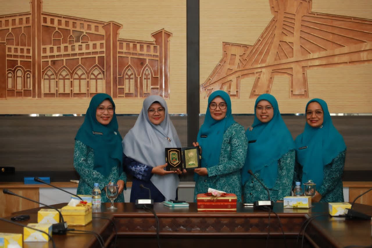 Bupati Siak Afni Zulkifli bersama Ketua TP PKK Kabupaten Siak Siti Sarifah menyambut hangat kunjungan Ketua TP PKK Kabupaten Lima Puluh Kota, Ny. Asra Yanti Safni, beserta rombongan.